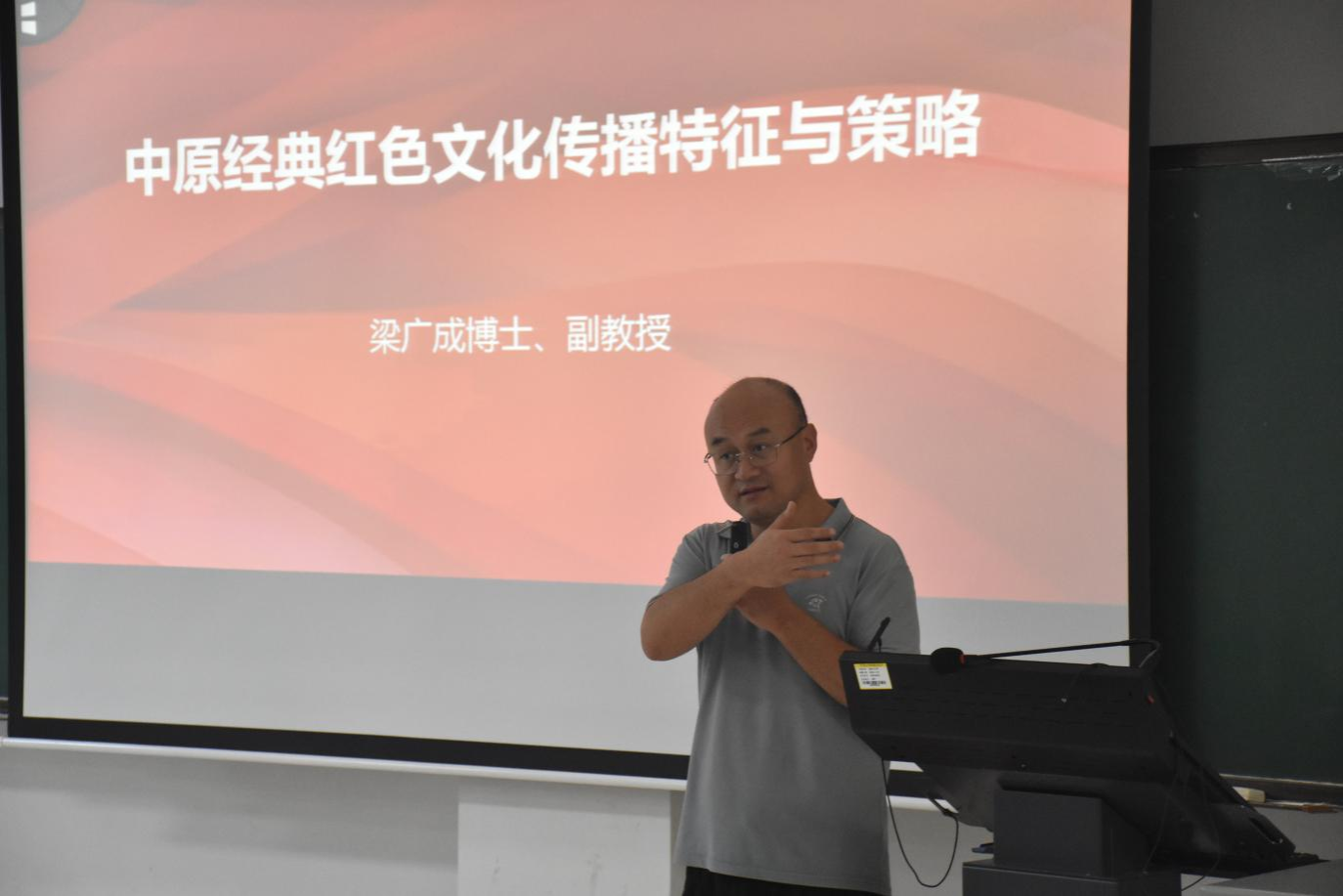 9月11日下午,国鼎文化讲堂之《中原经典红色文化传播特征与策略》在图书馆L501教室开讲。本次讲座由校友会办公室主任梁广成博士主讲。