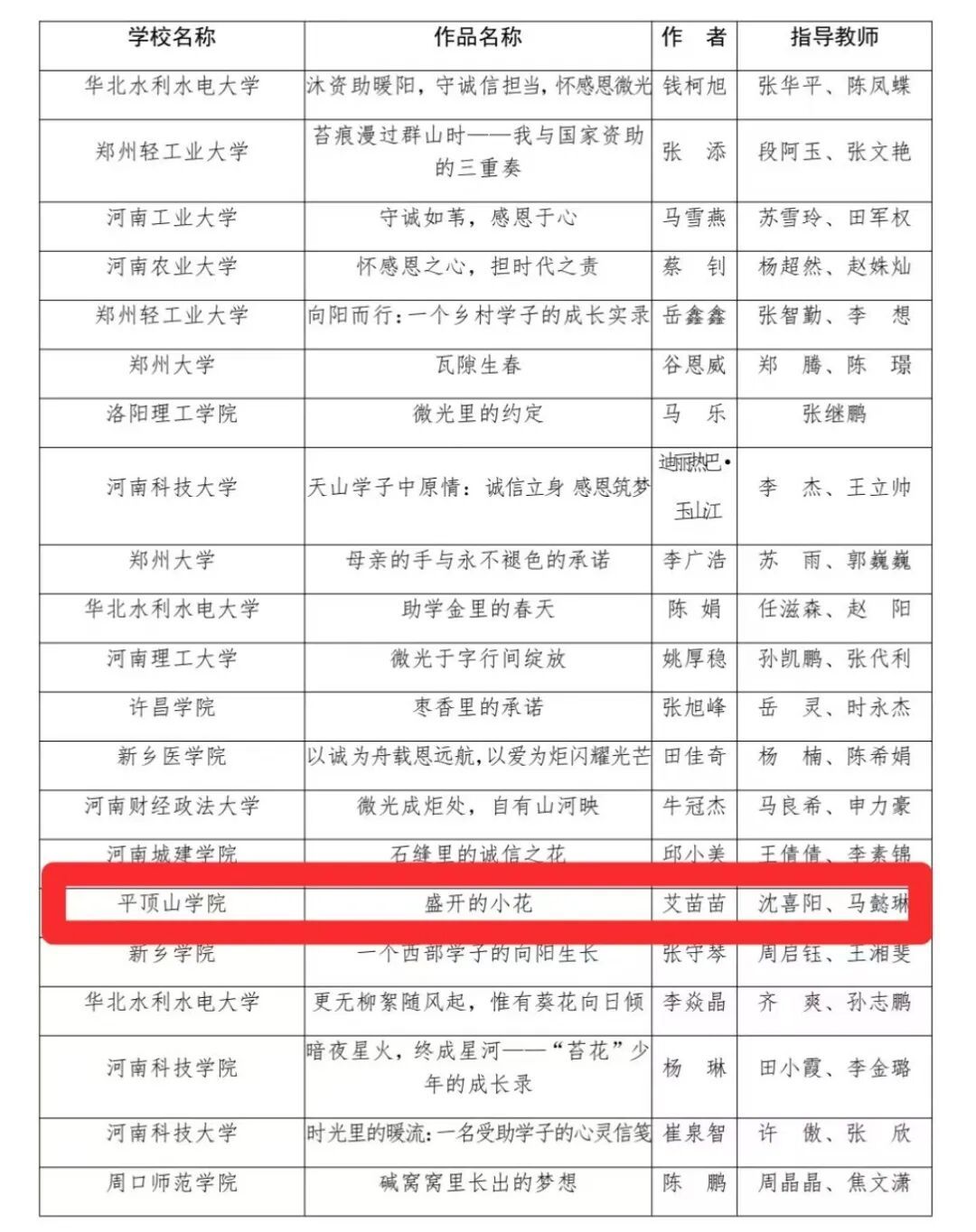 william威廉亚洲官方学子在第十八届河南省“诚信校园行”学生资助宣传教育活动中获奖